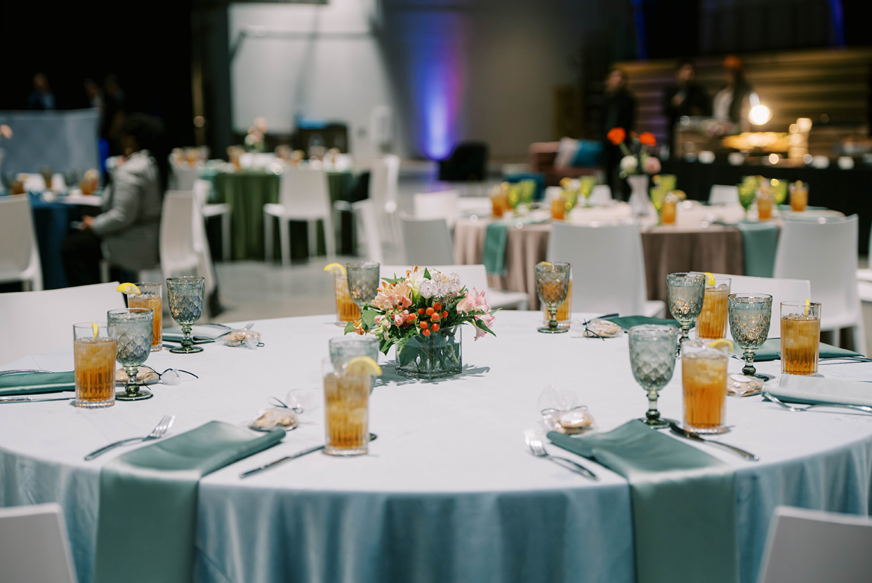 2026 Trends: Drapery, custom backdrops, elevated linens, and enhanced table settings are rising in popularity. Small details—like unique flatware, napkin rings, and centerpieces—can make a big impression and tie branding into the physical event space.